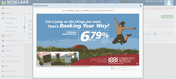 Moklaar is remote management tools of ATM software, branding and marketing, including graphics, software updates, applications, audio/video files, etc to be distributed to ATM fleet.