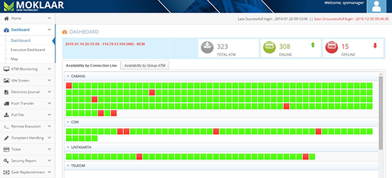 Moklaar can monitor the avaibility entire fleet of ATMs.